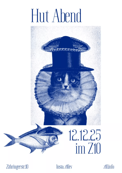 Wer kennt es nicht, beim Aufräumen findet man eine phrygische Zipfelmütze und fragt sich jetzt: Zu welchem Anlass ziehe ich sie endlich mal an? Der Hut-Abend im Z10 ist die Lösung! Ob Melone, Zylinder oder selbstgebastelter Aluhut – heute dreht sich alles um die verrücktesten Kopfbedeckungen! Die ausgefallenste Kopfbedeckung wird sogar noch prämiert. Daher komm vorbei und zeig deine kreativsten Ideen oder was die Untiefen deines Kleiderschrankes hergeben.Link:https://z10.info